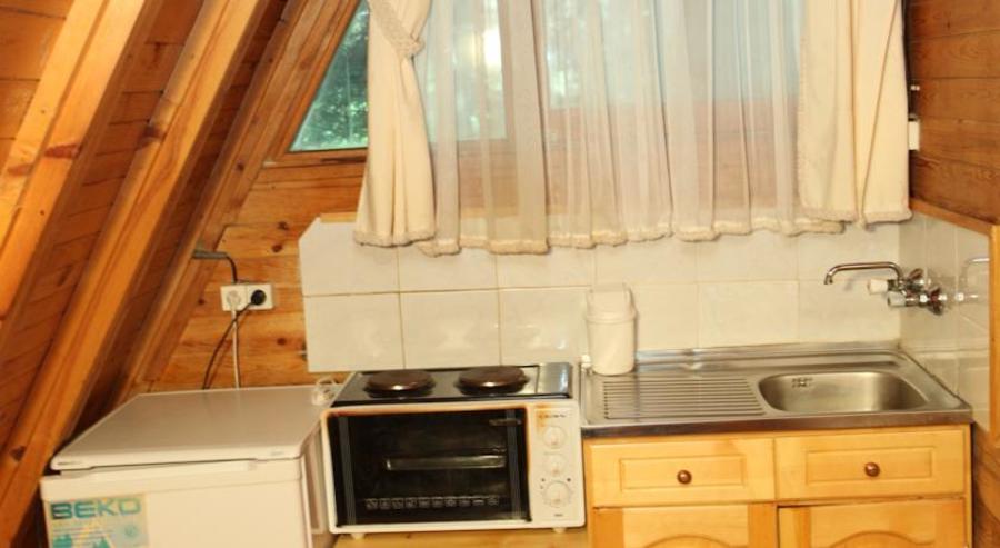 Кухненски бокс с готварска печка, хладилник и мивка. Вилите са оборудвани и с основните съдове за готвене, чинии, чаши и прибори;